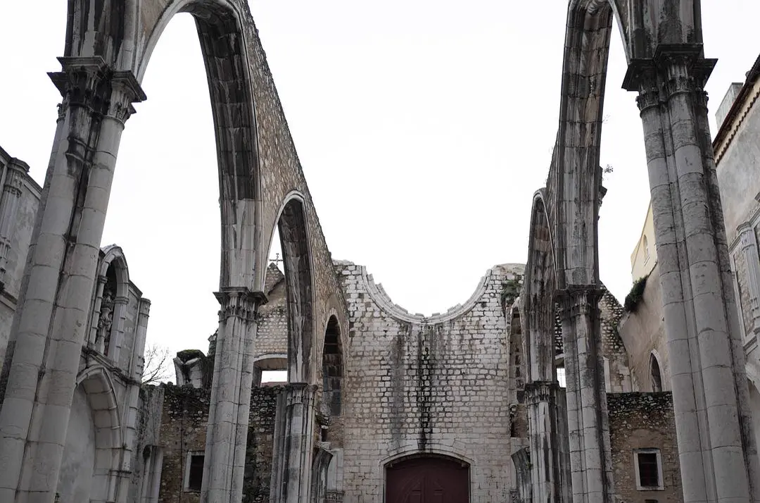 In Lisbon, besides the Cathedral, there are two very famous monasteries. One is on the edge of the city center, called the Carmo Convent. Because of an early earthquake, it lost its roof, leaving only walls and flying buttresses. The other is in the west of the city along the coast, called the Jerónimos Monastery.
