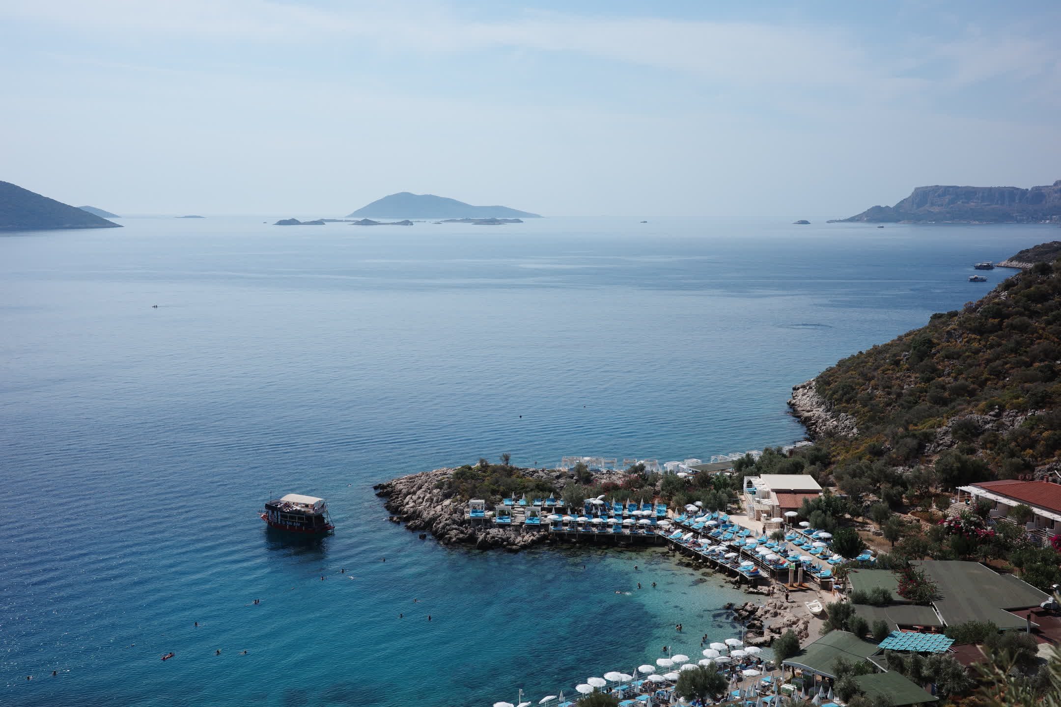 On the west side of Kaş lies a peninsula, shaped like a piece of dough squeezed out by hand—narrow at the tip and wide at the base. Heading north from the busy town center and turning past a fork in the road, you reach its entrance. A large ring road encircles the entire peninsula. Just follow it forward—no guidance needed, few cars, excellent road conditions.