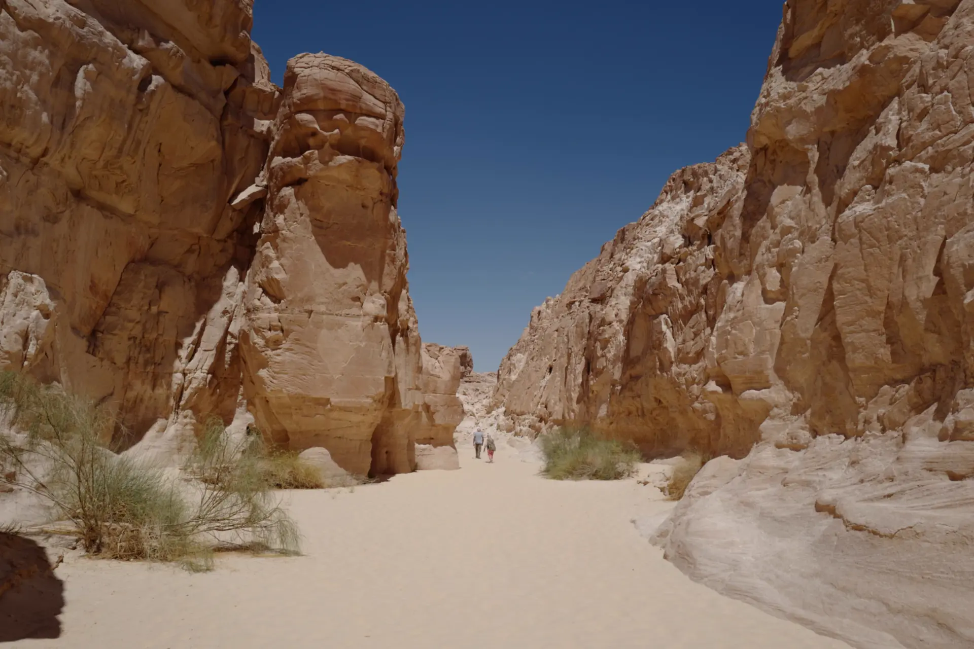 We walked forward at uneven paces. Sunlight filtered through the rock walls, casting dappled shadows. The sandy ground and sparse plants shone under the sun. Occasionally, beetles passed by. These rare creatures seemed to walk inside a picture frame, making it feel like watching a high-definition desert documentary.