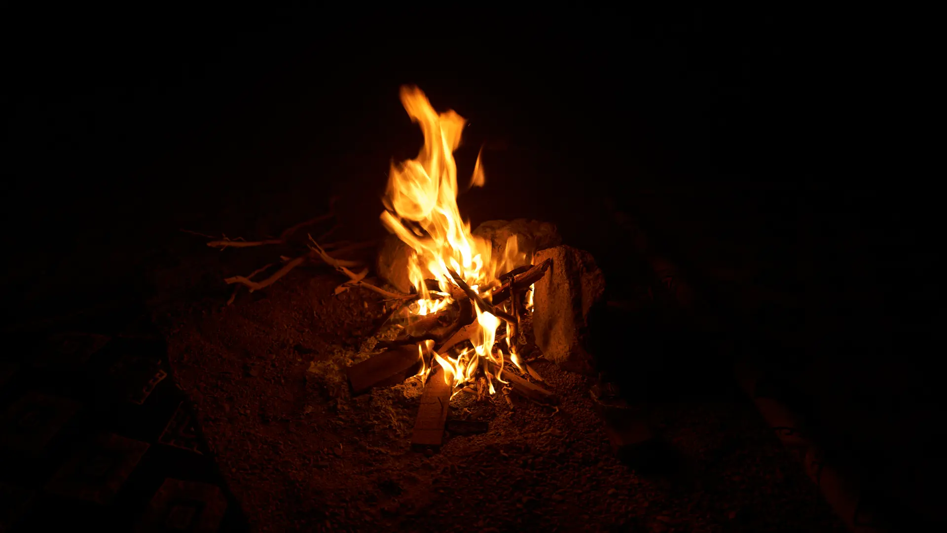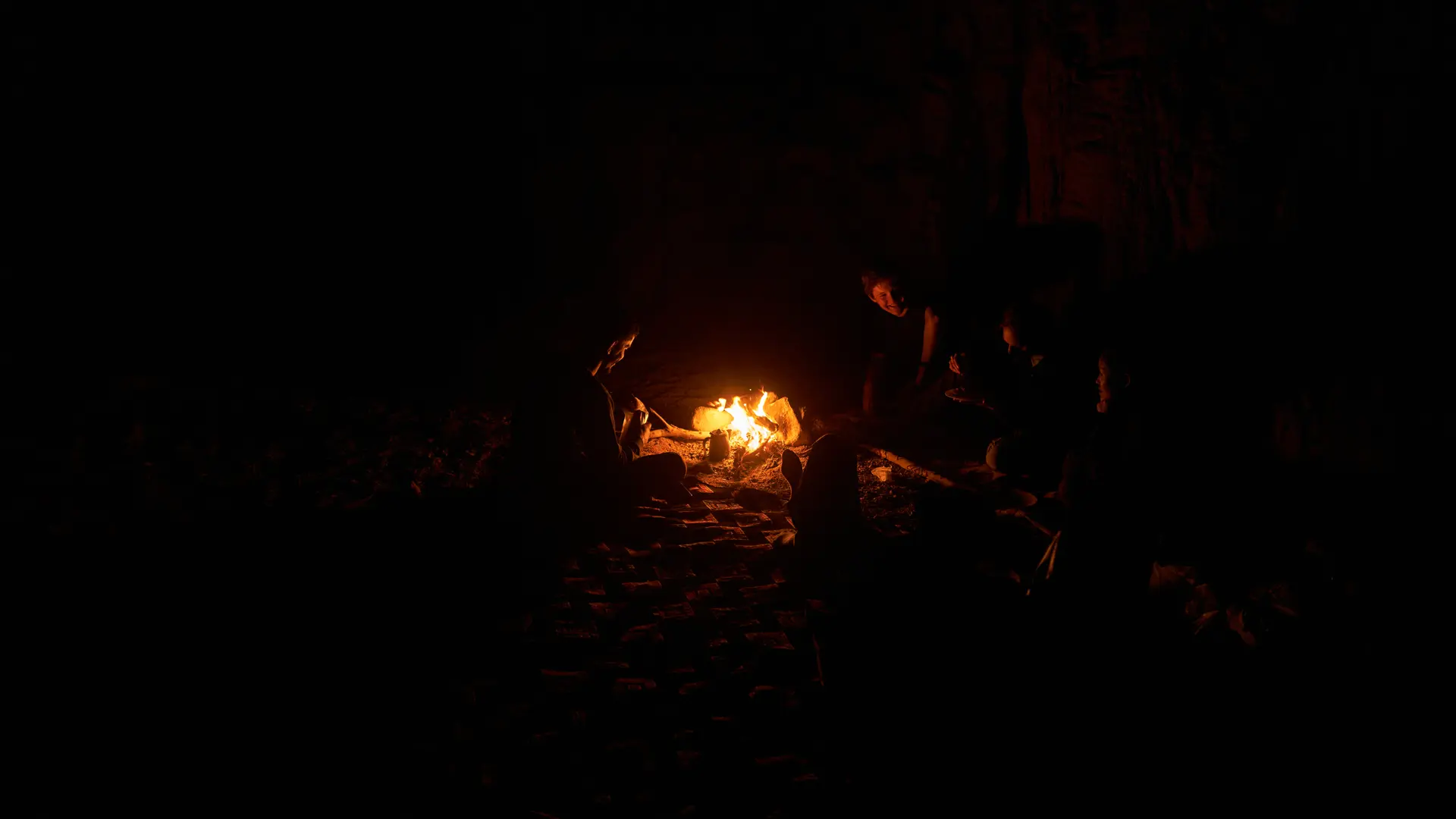 Before it went completely dark, we tried to squeeze in a few more routes to save this precious time. Taking advantage of this interval, Mo had already lit a bonfire with his back against the rock wall. Beside the fire lay firewood gathered from the valley, placed upon a large Arab carpet. He told us this was the most traditional Bedouin custom.