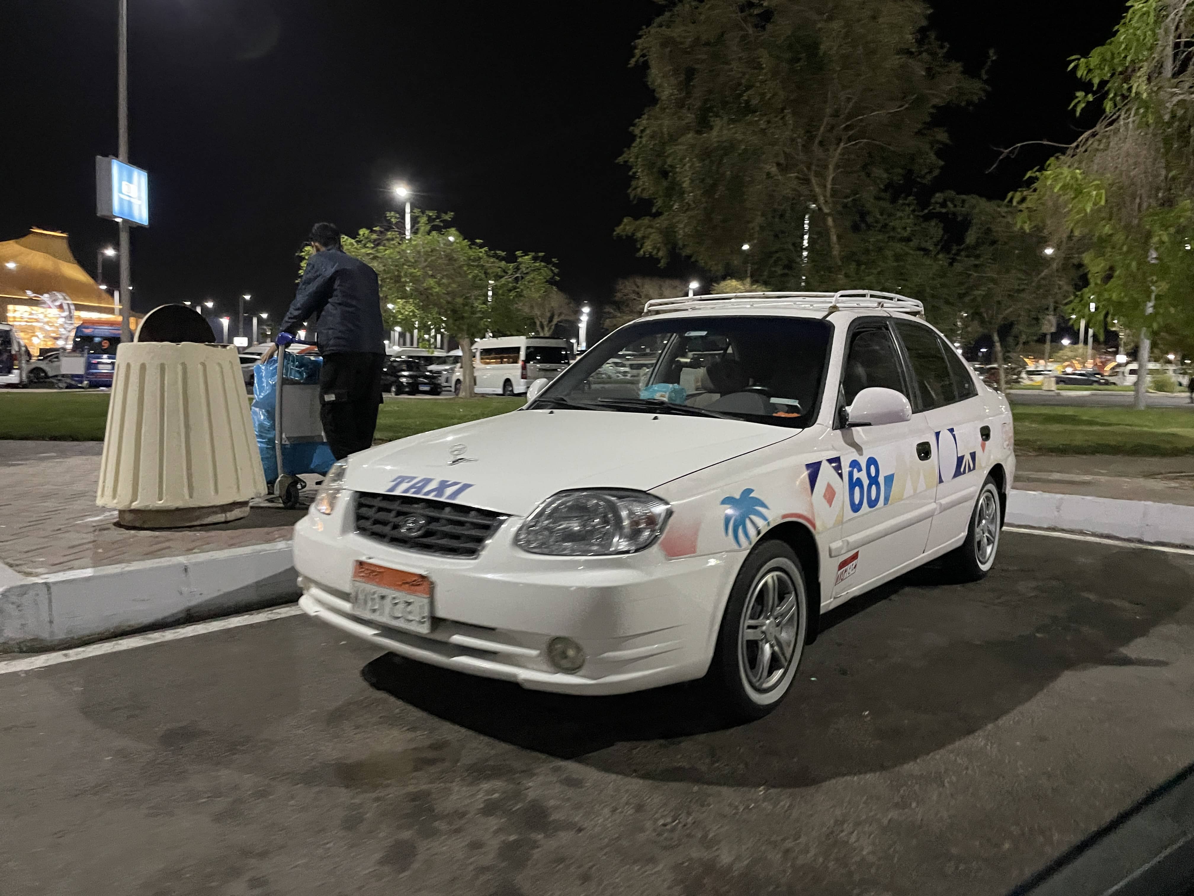 事实上,的确是我们想的太多。出了机场大门,尽管时间已经是凌晨,但广场上灯火通明,两旁站满了人。我从左到右快速扫视一圈,立刻就发现了负责接送的司机。他手中攥着一张薄纸,上面书写「Dahab Kang」。虽然字迹十分脆弱,但非常容易分辨。